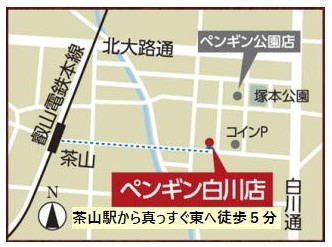 駐車場有ります(店の前 2台 有リ) 満車で店の前に駐車できない時は、 ペンギンスタッフに声をかけてください 近くのコインパーキングに駐車して頂きます (料金はこちらで、お支払いしますので) 安心してお車でお越しください ご予約優先専用TEL 0120−054−382 定休日 |